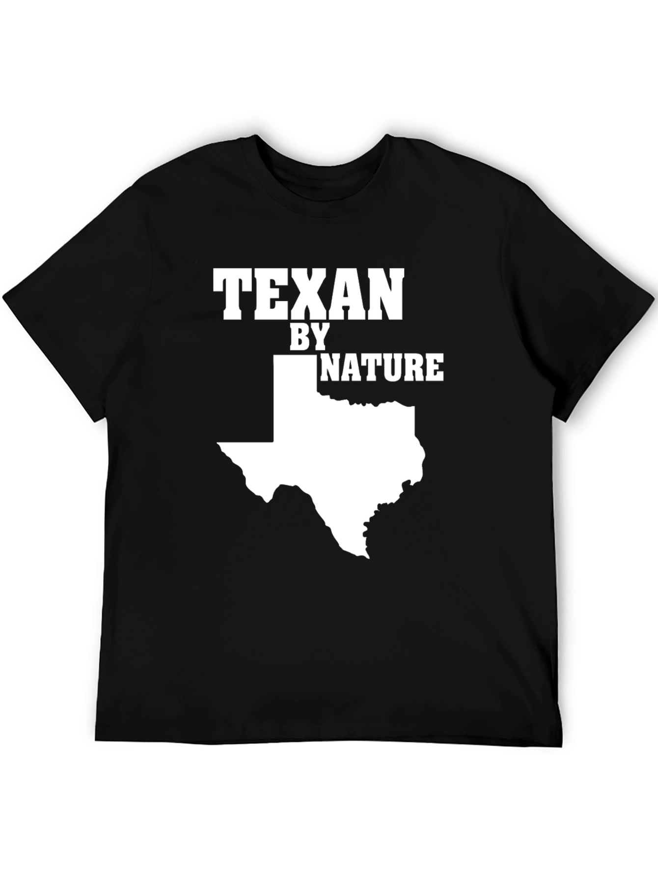 Show off your Texas pride with this stylish black t-shirt. The shirt features a bold "Texan by Nature" design with the shape of Texas. This tee is a great way to express your love for the Lone Star State. Made from what appears to be comfortable cotton fabric, this tee is perfect for casual wear, sporting events, or a gift for any Texan. Get yours today and wear your Texan pride!