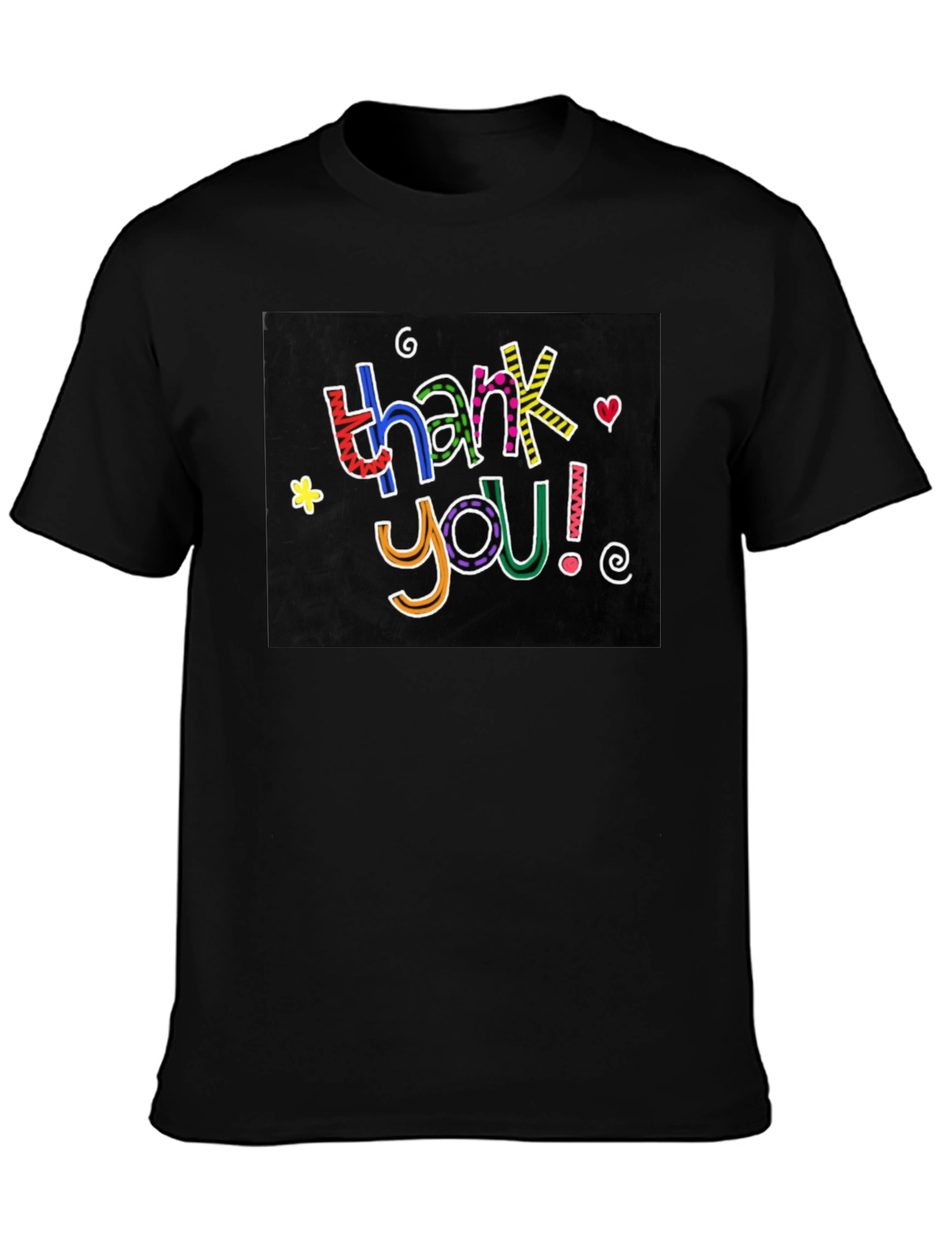 Show your appreciation with this vibrant "Thank You!" graphic t-shirt. The design features a colorful, playful font against a dark backdrop, making it pop. This men's tee is made from a comfortable, soft-feel fabric and has a classic crew neck cut. The solid black color makes it versatile for casual wear. Whether you're expressing gratitude or just adding a fun statement piece to your wardrobe, this t-shirt is a great choice. Perfect for everyday wear, casual outings, or as a thoughtful gift.
