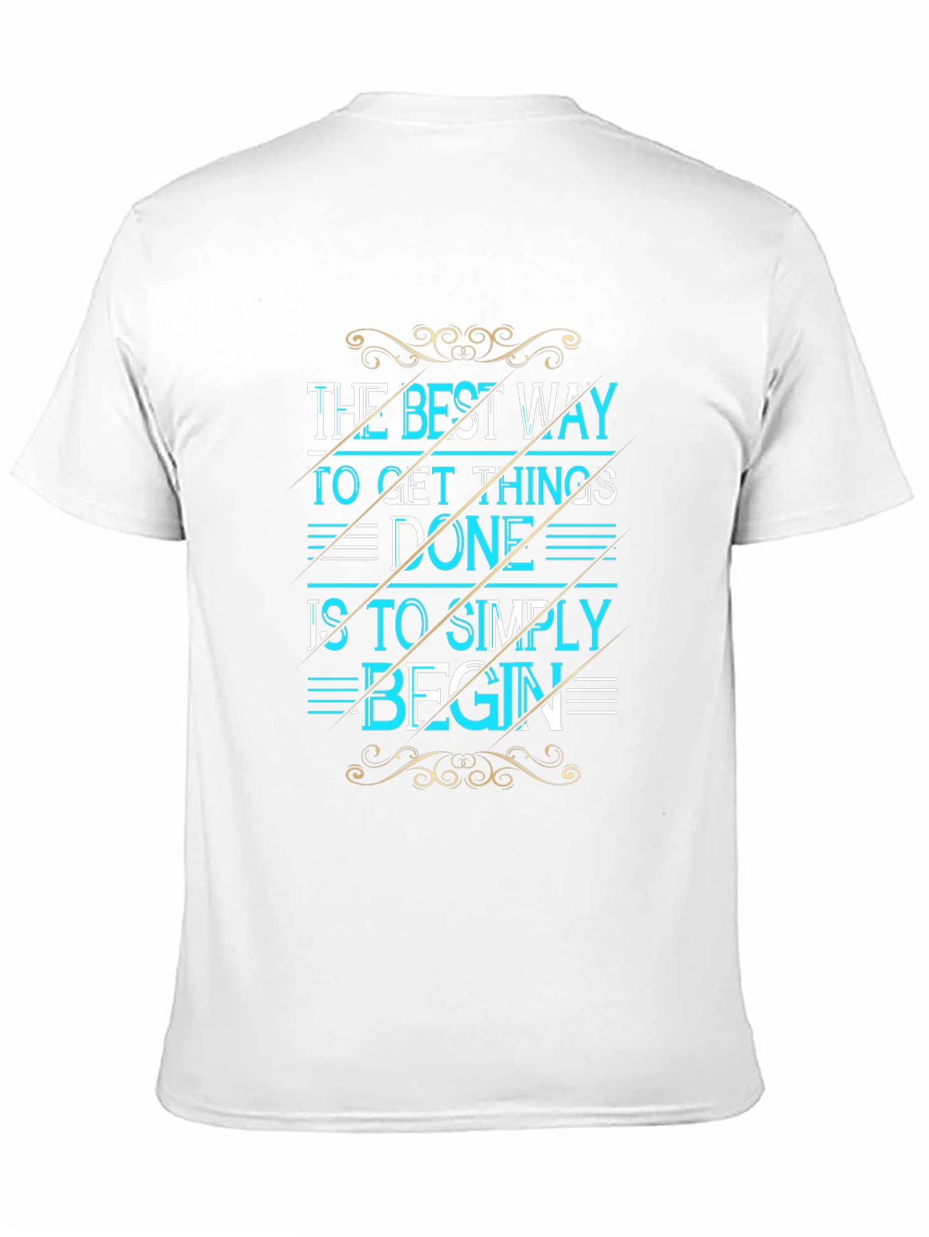 Show off your motivation with this stylish black graphic tee. Featuring the phrase "The Best Way To Get Things Done Is To Simply Begin" in a vibrant teal color. The design is finished with decorative accents in a golden hue, adding a touch of elegance. Made from comfortable materials, this t-shirt is perfect for casual wear, gym sessions, or a day out with friends. It's not just a shirt, it's a statement!