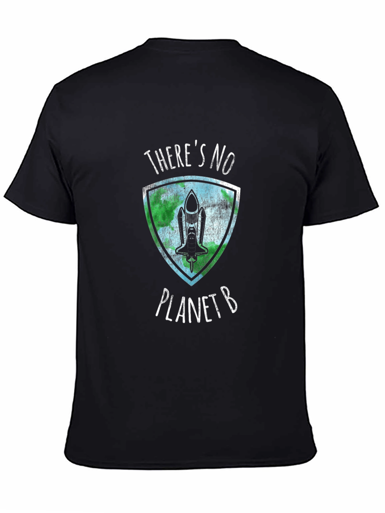Show your love for planet Earth with this stylish black t-shirt. Featuring a unique design with a shield-shaped emblem containing an image of a space shuttle and the phrase "There's No Planet B", this shirt is perfect for environmental activists and space enthusiasts alike. The design is bold and eye-catching, making it a great conversation starter about the importance of protecting our planet. Made from a comfortable and durable fabric, this tee is ideal for everyday wear. Make a statement while staying comfortable with this environmentally conscious t-shirt.