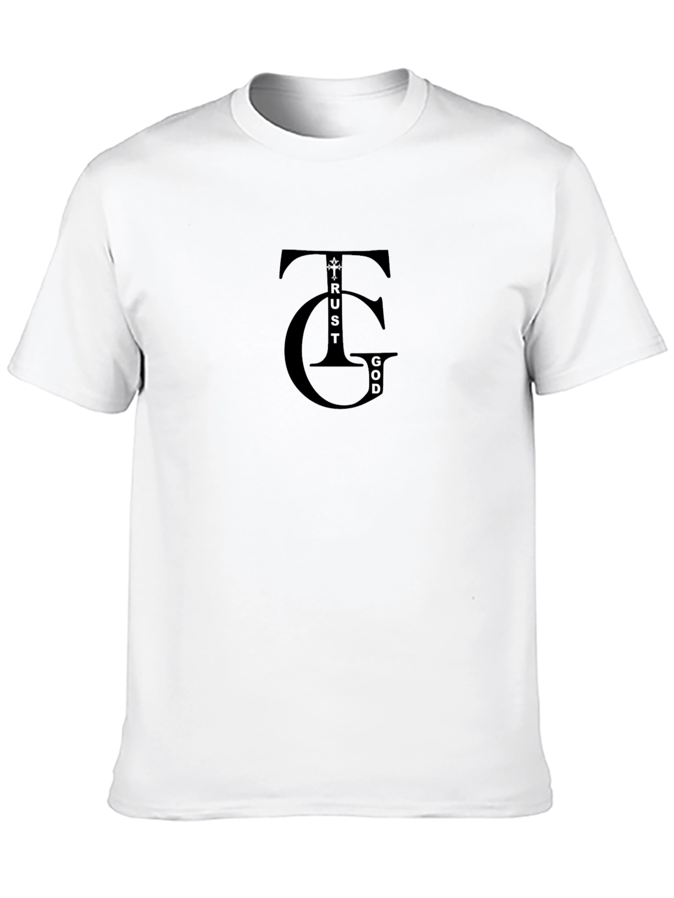 Show your faith with this stylish black t-shirt. It features a striking graphic design with the words 'Trust God' integrated into a stylized 'TG' logo. Crafted from comfortable material, this tee is perfect for casual wear, church events, or as a statement piece to express your beliefs. The simple yet powerful message makes it a great conversation starter and a reminder to keep faith at the forefront of your mind. Wear your devotion proudly with this unique and inspiring t-shirt. A must-have addition to your faith-based wardrobe!