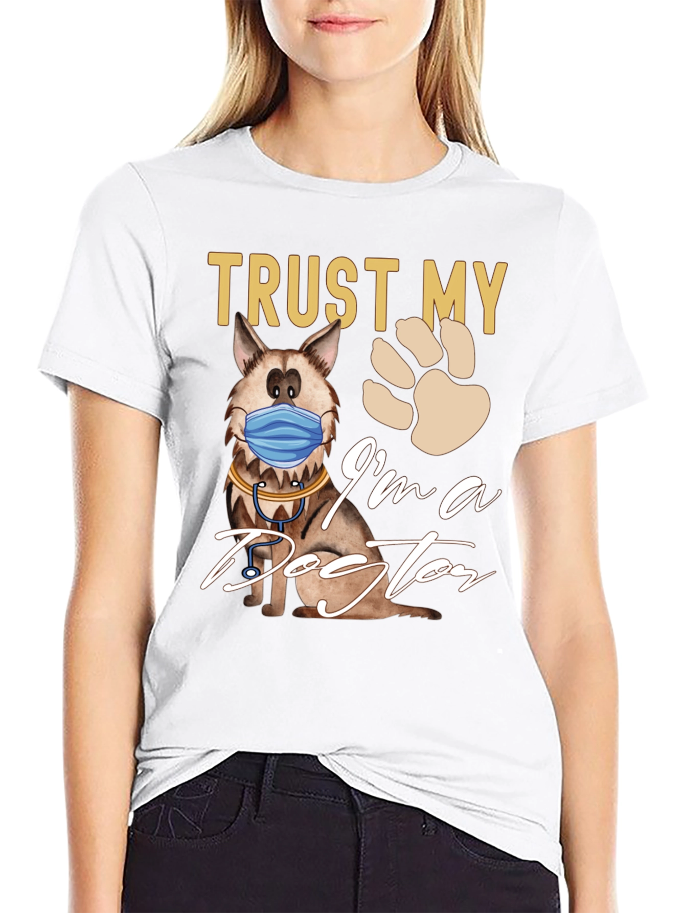 Show off your love for dogs and healthcare with this unique t-shirt! The design features an adorable dog wearing a face mask and a stethoscope, accompanied by a paw print and the playful text 'Trust Me, I'm a Dog-tor'. Made from a comfortable black fabric, this tee is perfect for casual wear, vet visits, or simply expressing your passion for animals and medicine. Whether you're a veterinarian, a dog lover, or someone who appreciates a clever design, this t-shirt is sure to be a conversation starter. Get yours today and let your style speak volumes!