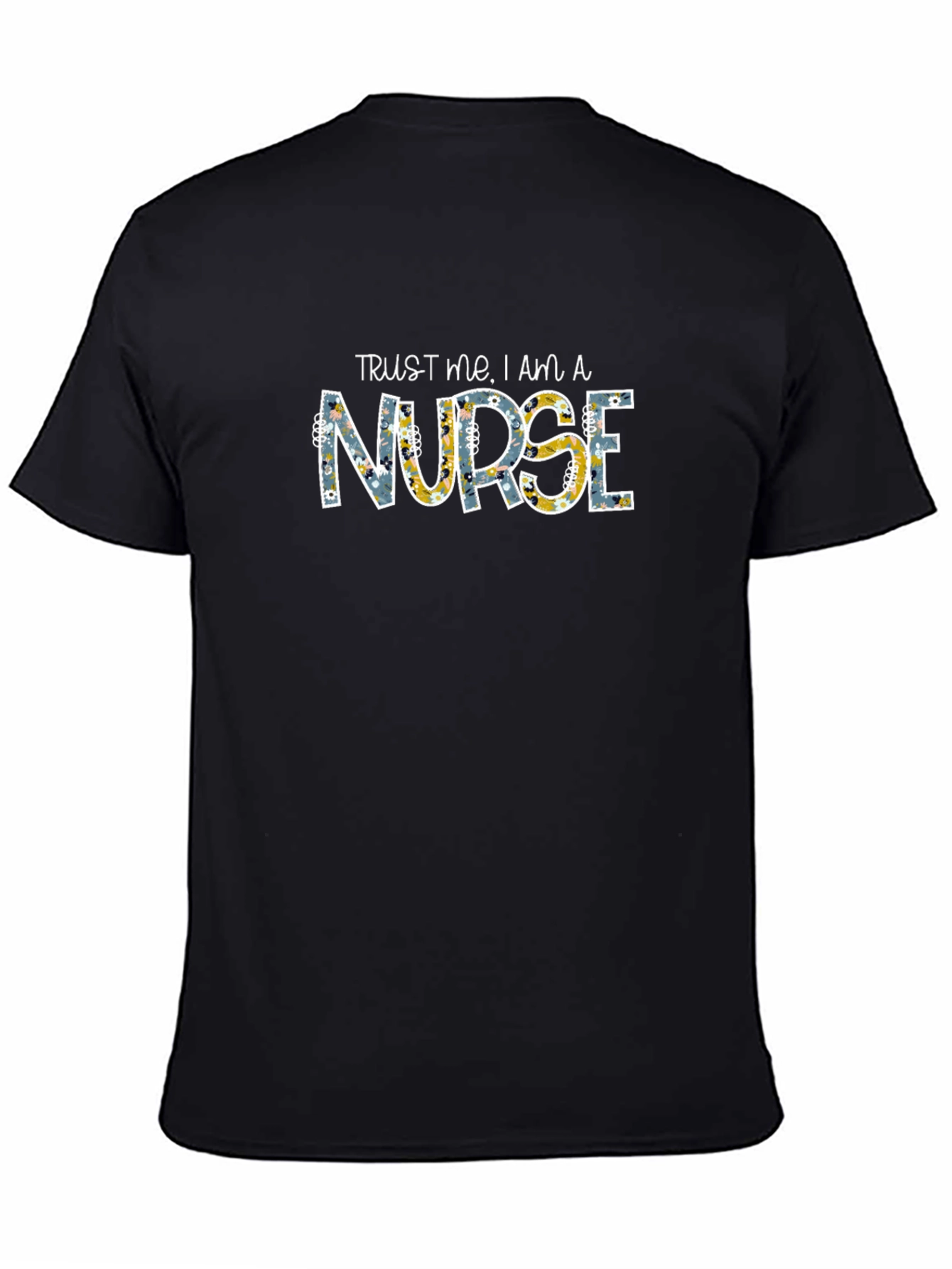 Show off your medical pride with this unique Trust Me I'm a Nurse t-shirt! This eye-catching design features the words "Trust me. I am a NURSE." The playful lettering adds a touch of personality, making it a fun and lighthearted way to express your profession. Crafted from comfortable materials, this tee is perfect for everyday wear, whether you're at work, running errands, or relaxing at home. It also makes a thoughtful gift for the nurses in your life, showing your appreciation for their hard work and dedication.