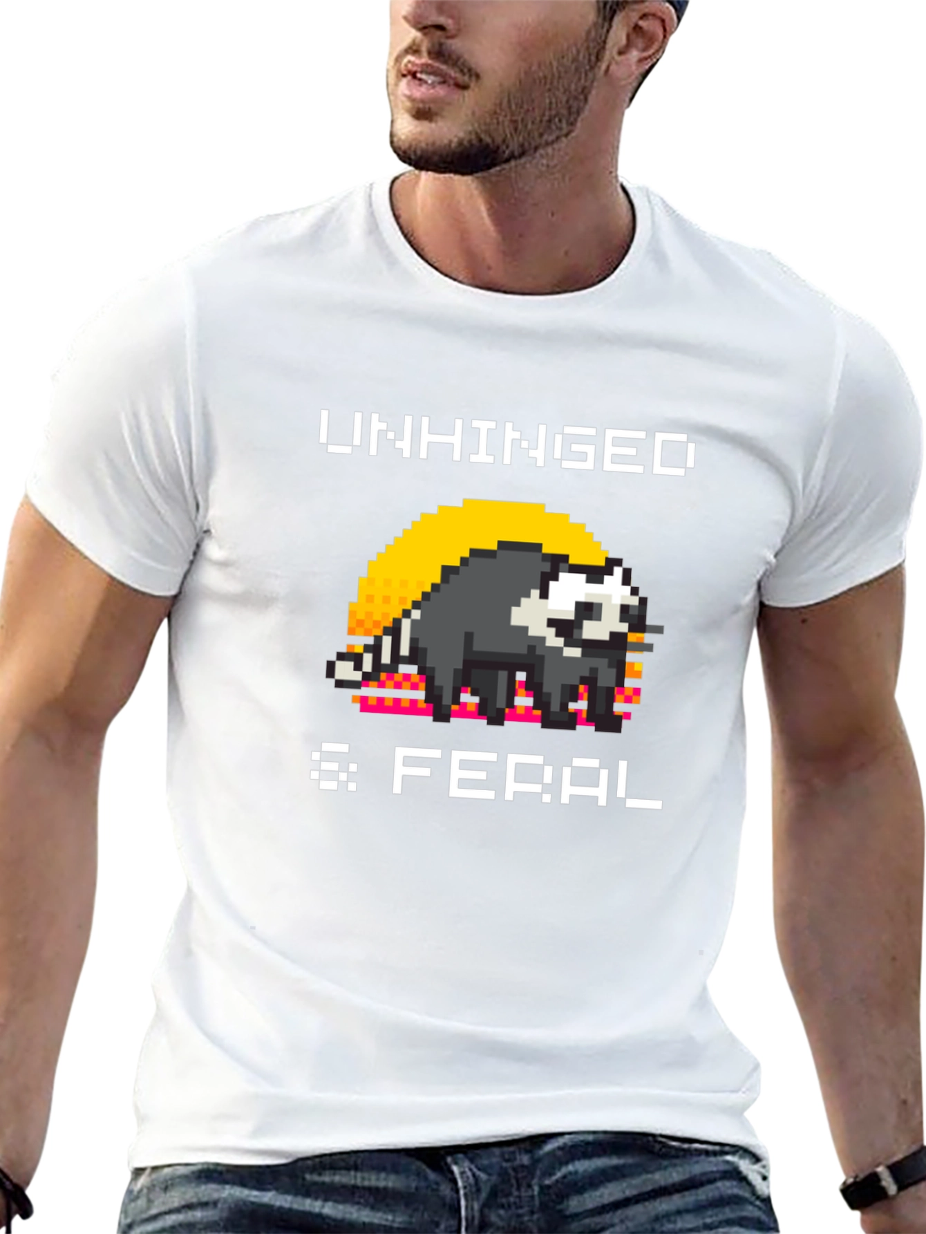 Unhinged & Feral T-Shirt - Pixel Art Raccoon Tee