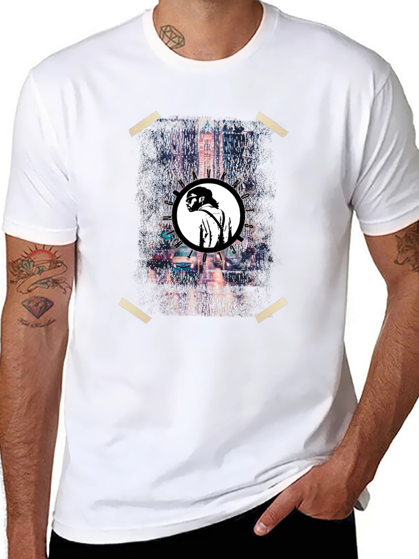Embrace the city's energy with this striking black graphic t-shirt. Featuring a unique design of a figure within a cityscape circle, this tee is perfect for those who appreciate urban style. The design is detailed, capturing the essence of a bustling street at night. Made from a comfortable-looking fabric, this shirt offers a relaxed fit, making it ideal for everyday wear. Whether you're exploring the city streets or hanging out with friends, this eye-catching t-shirt will make a statement. Add a touch of urban cool to your wardrobe with this must-have piece.