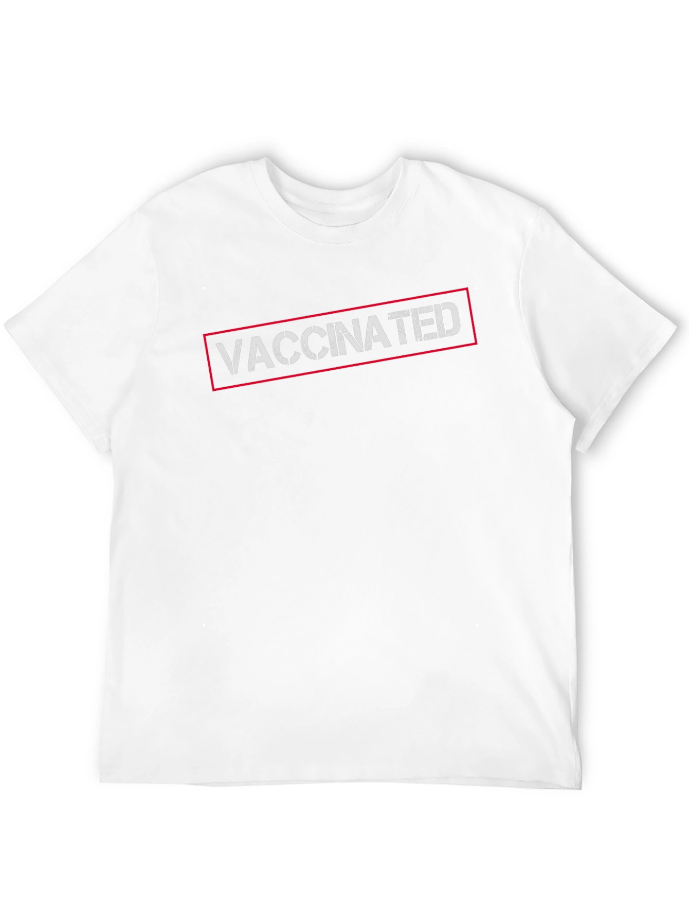 Show off your vaccination status with this stylish black t-shirt. Featuring a bold, white "VACCINATED" print encased in a striking red border, this shirt is a simple way to advocate the importance of immunization. The shirt appears to be made from a comfortable, breathable cotton or cotton blend, ensuring a great fit and all-day comfort. The classic short-sleeve design makes it ideal for casual wear, public events, or even as a conversation starter. Get yours today and wear your vaccination status with pride!