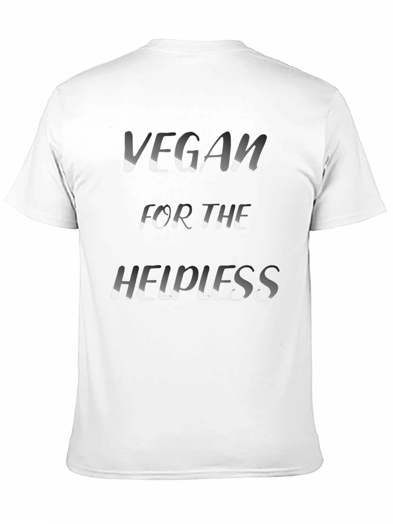 Show your support for animal rights with this stylish and comfortable vegan tee. The shirt features bold white lettering, "Vegan for the Helpless", emblazoned across the chest, making a powerful statement. Made from a soft, breathable material, this tee is perfect for everyday wear or for making a statement at vegan events and protests. Its classic crew neck and short sleeves provide a comfortable fit. Wear your values proudly and spark conversations with this impactful tee.