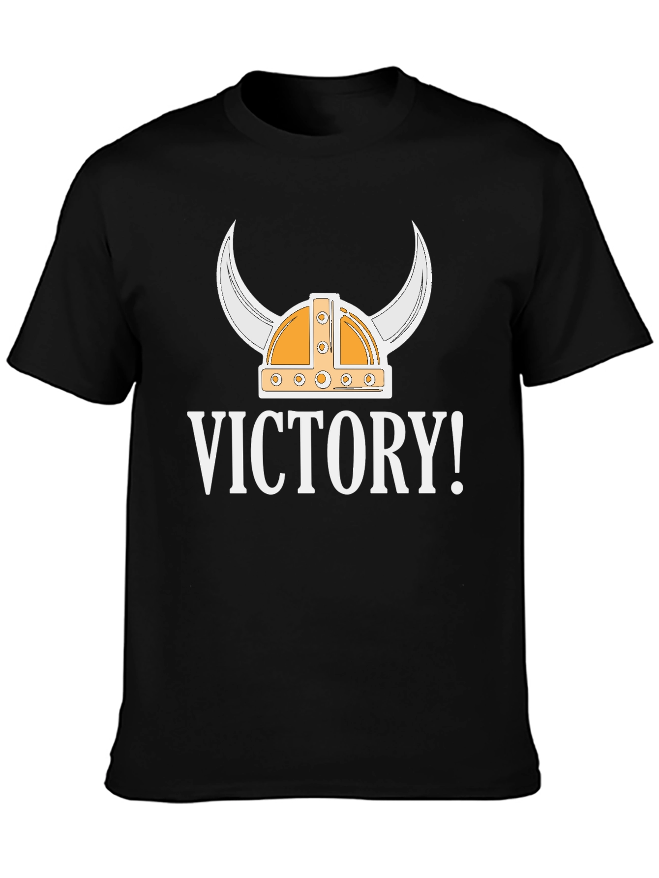 Showcase your victorious spirit with this striking black graphic tee! The shirt features a bold design of a Viking helmet with prominent horns, placed above the powerful word 'VICTORY!'. The contrasting white graphic stands out sharply against the black cotton fabric, ensuring a comfortable and stylish fit. Ideal for casual wear, sporting events, or everyday expression, this tee adds a touch of triumph to any outfit. Express yourself with style and strength!