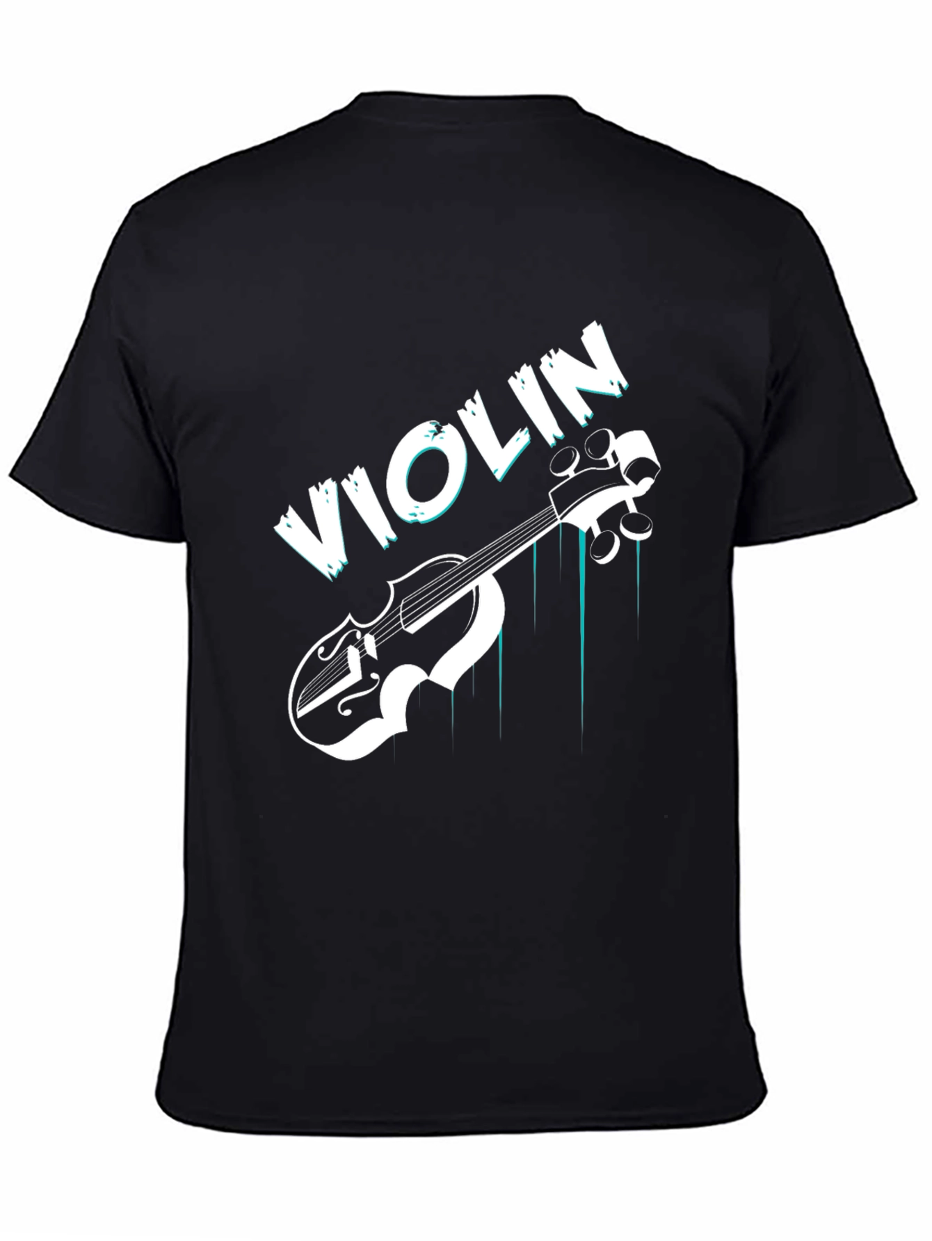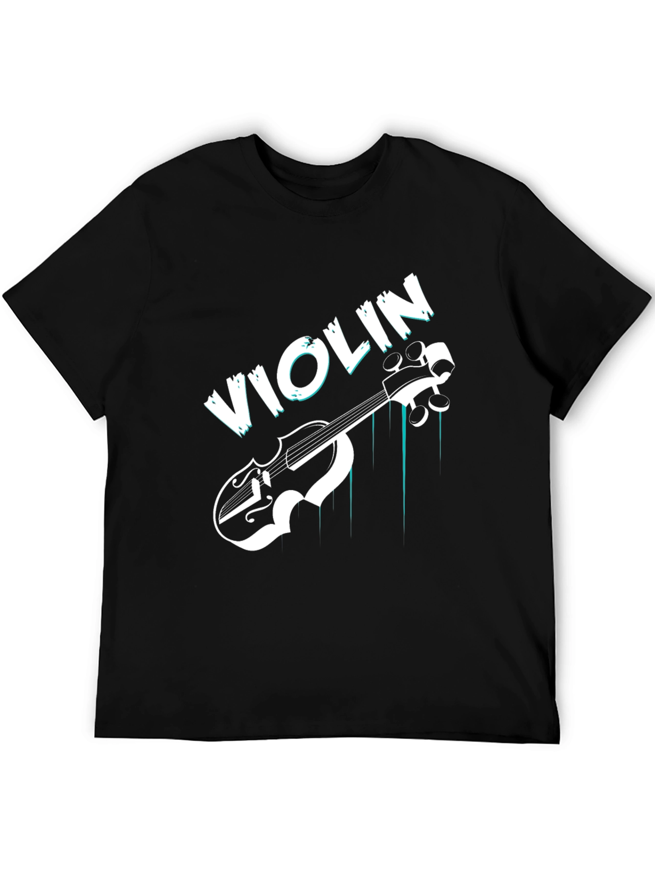 Show your love for music with this stylish black T-shirt. Featuring a striking white graphic of a violin with the word 'VIOLIN' artistically displayed above, this tee is perfect for musicians, music lovers, and anyone with an appreciation for classical instruments. The design also includes unique blue dripping accents, adding a modern twist. Made from comfortable, breathable fabric, this short-sleeved shirt is ideal for everyday wear. Whether you're attending a concert, practicing your instrument, or simply hanging out with friends, this T-shirt is sure to make a statement. Elevate your wardrobe with this must-have musical apparel.