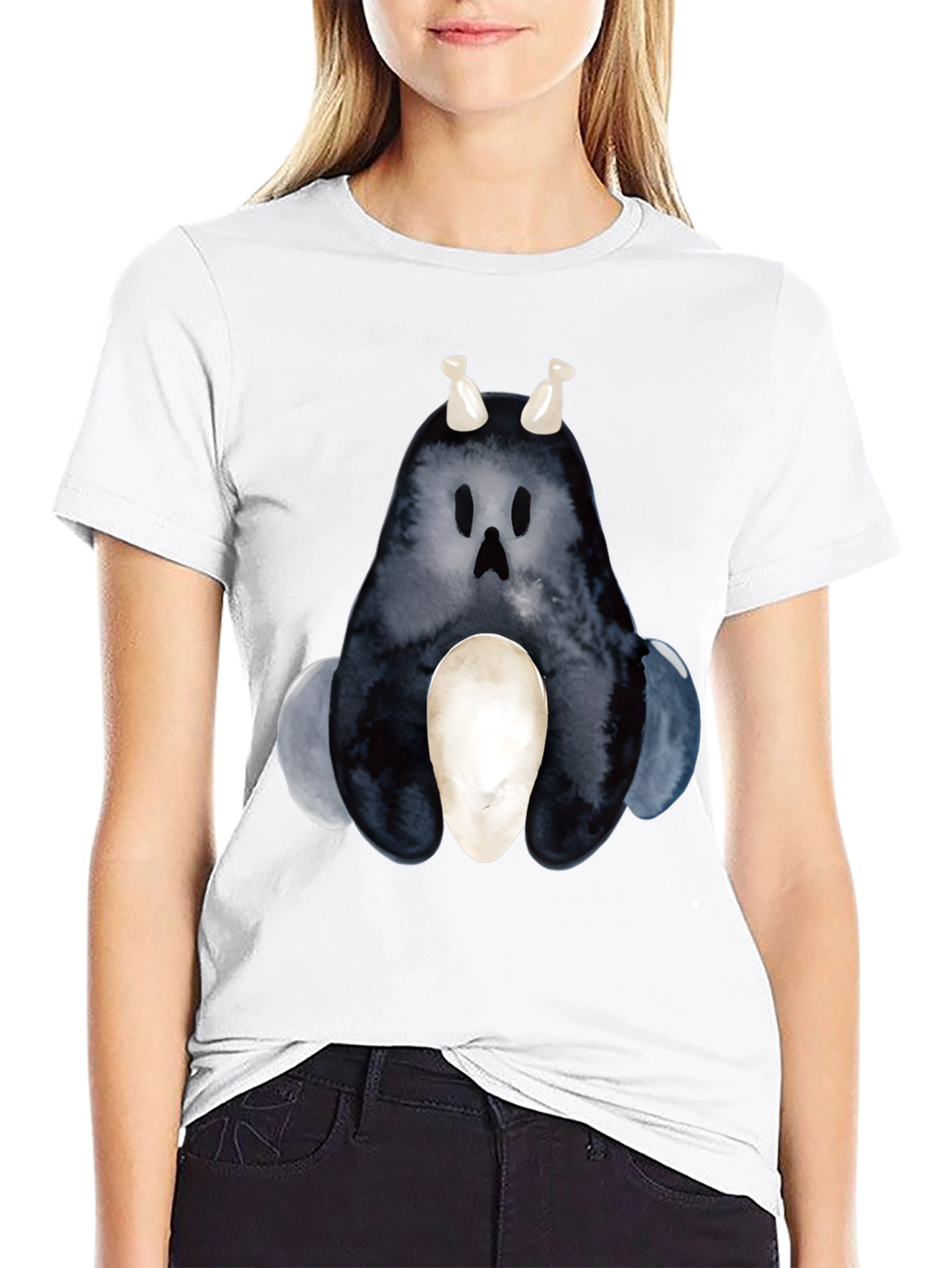 Add a touch of whimsy to your wardrobe with this unique graphic T-shirt. Featuring a charming watercolor-style monster design in shades of gray and white, this tee is sure to turn heads. The creature has adorable antenna and a sweet expression. Crafted from comfortable, breathable fabric, it's perfect for everyday wear. Dress it up with jeans or keep it casual with shorts. This T-shirt is a fun and fashionable choice for anyone who loves unique and expressive clothing. A great gift for the monster lover in your life!