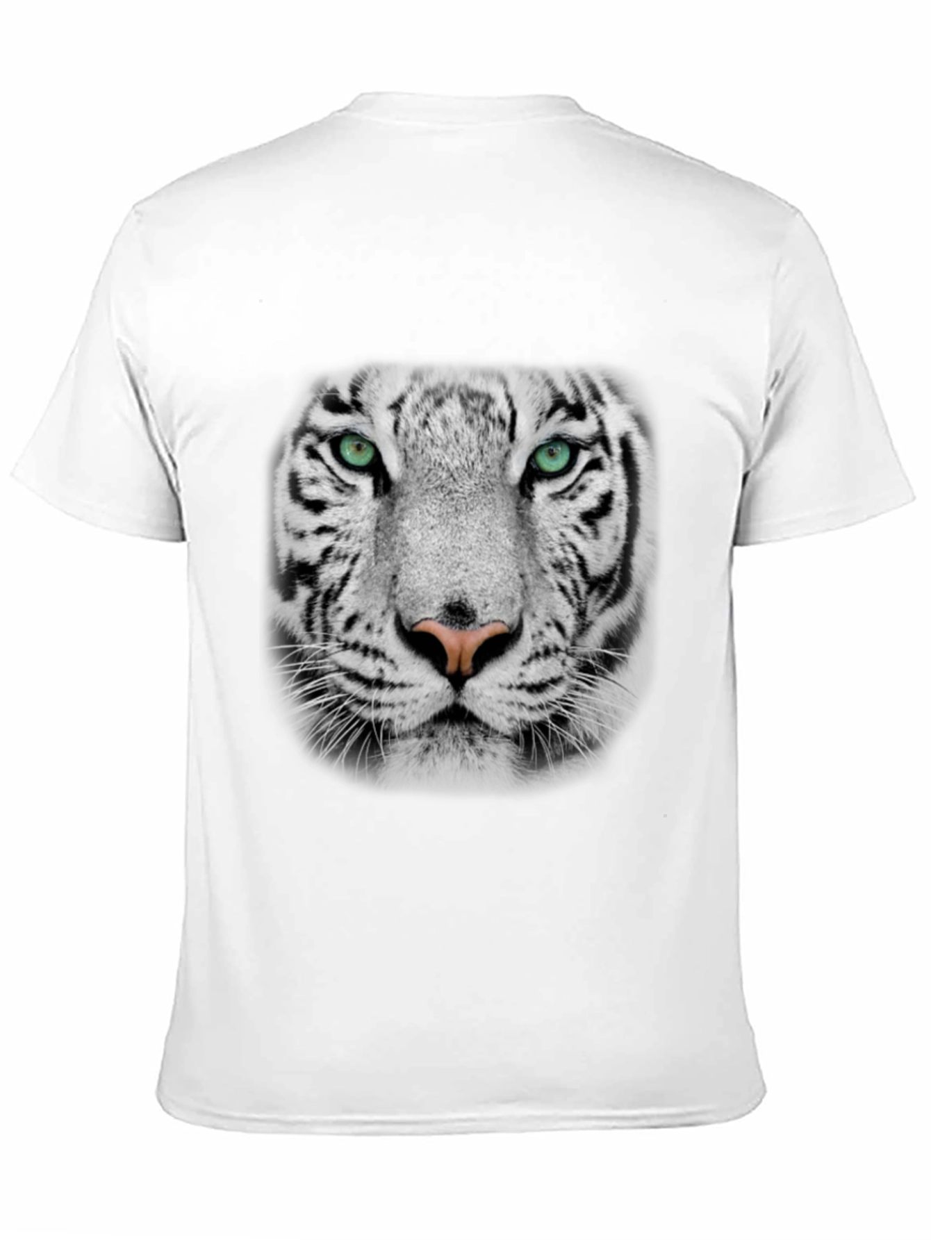 Unleash your wild side with this striking black t-shirt featuring a bold white tiger graphic. The design showcases the tiger's intense gaze and unique stripe pattern, making a statement piece. Crafted from soft, breathable fabric, this shirt offers both comfort and style. The classic crew neck and short sleeve design makes it perfect for casual wear, concerts, or a night out with friends. Make a statement and stand out from the crowd! This unique t-shirt is sure to turn heads and start conversations. A great addition to any wardrobe.