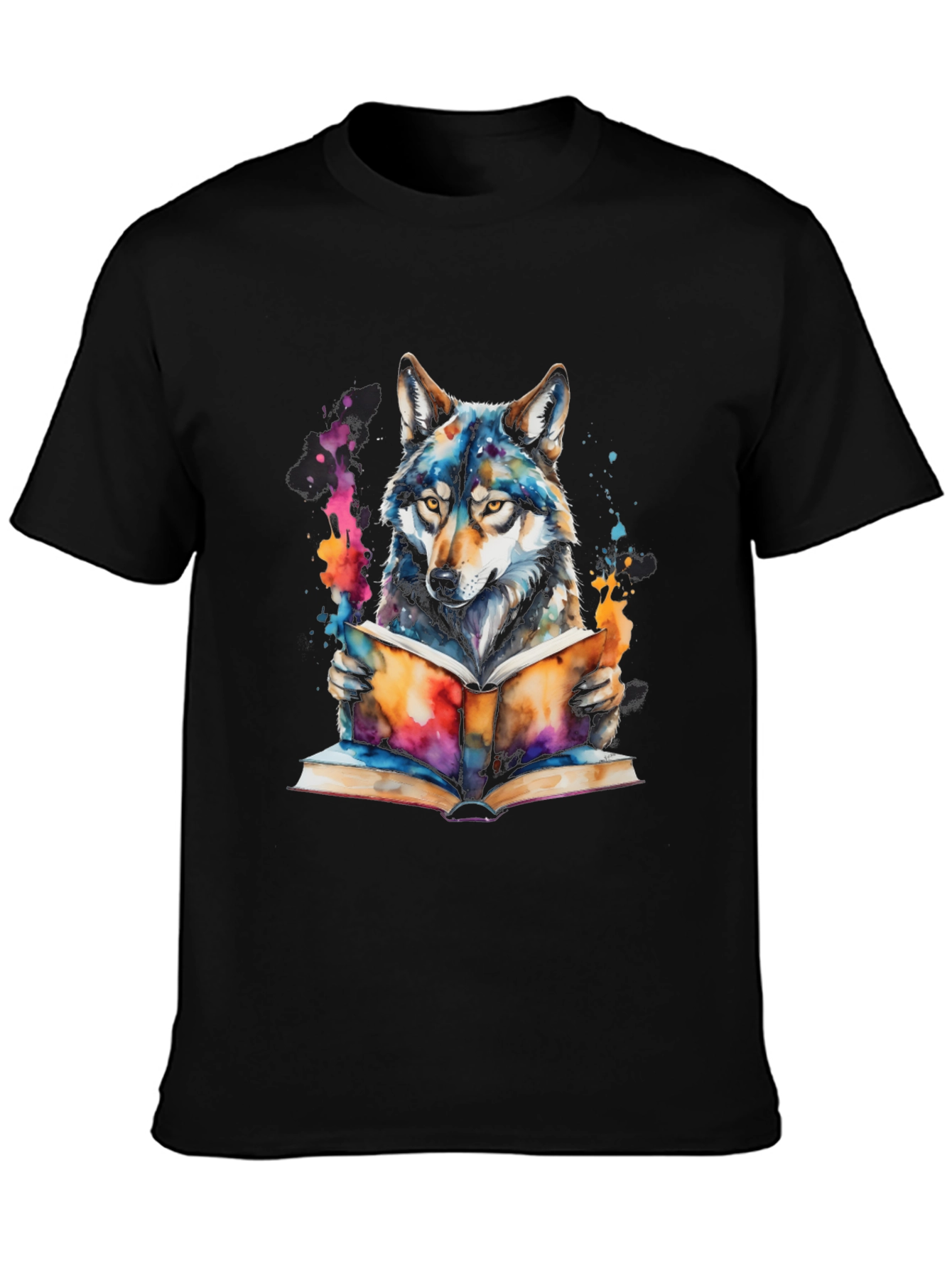 Wolf Reading Book T-Shirt - Artistic Graphic Tee